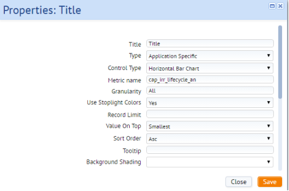 The type of application-specific item you determines the options that appear on the Properties form. When completing the Properties form, you will choose from a list of scorecards and metrics that you have already developed. For information on scorecards, metrics, and granularity, see Performance Metrics: Overview and How to Define a Metric.