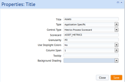 If you choose Metrics Process Scorecard as the Control Type, you complete the following form. To complete the Scorecard field, you choose from a list of scorecards that you already developed using the System / Add-In Manager / Define Scorecards task.