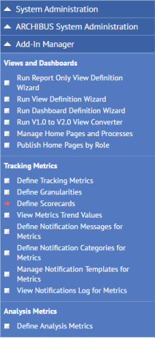 The Navigator offers the following tasks for defining metrics: