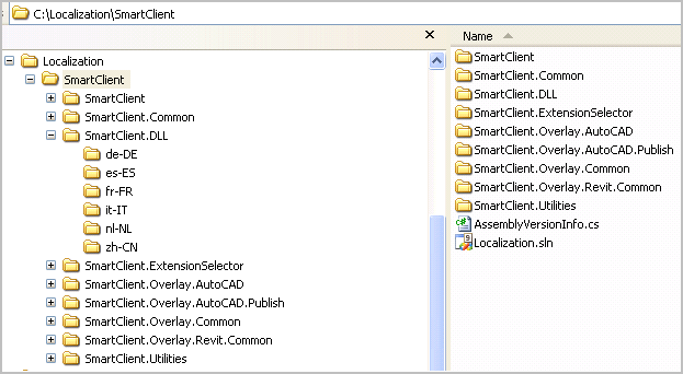 8. Once the build finishes, you can find the newly built resource dll’s in the C:\Localization\SmartClient\SmartClient.DLL\xx-XX folder. The xx-XX name represents the .NET language convention.