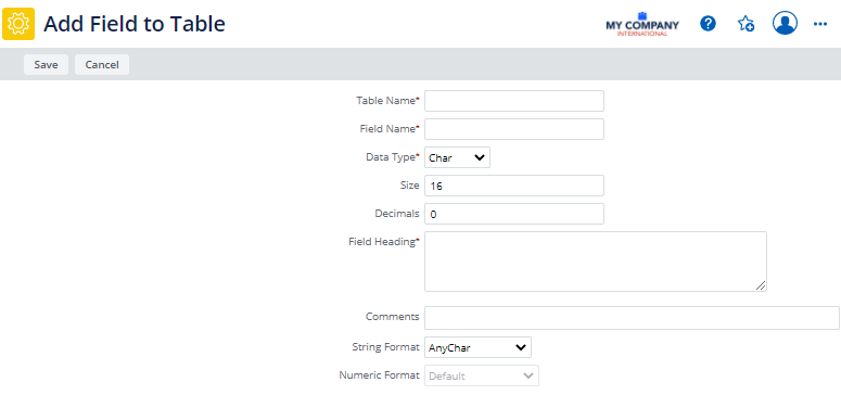 - Table Name: Choose the table (from the Archibus Tables table) to which you are adding a field.