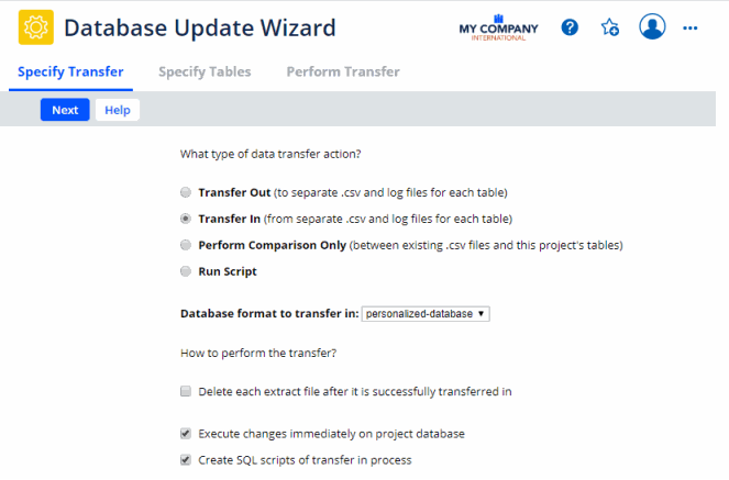 - Execute changes immediately on project database -- the wizard will make the changes directly in the database that you are logged in to. Use caution when choosing this option , as you can't "undo" except by restoring a backup of the database.