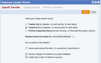 Data that have been exported from one database using the Database Update Wizard can be imported into another database using the Transfer In option of the Database Update Wizard. Some examples of when you need to import data are:
