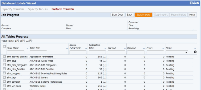 This topic covers imports for all types of data except data that is related to the Archibus data dictionary. Data dictionary imports have additional considerations and are covered in Performing the Data Transfer: Merge Data Dictionary Tables.