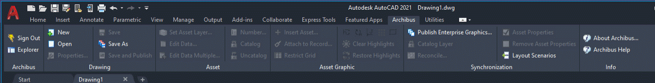 The Archibus Smart Client Extension for AutoCAD resides on top of the full AutoCAD program and uses Web Services to sign into and connect to the Archibus server application. Once connected, you can edit asset symbols and update their associated Archibus data without leaving AutoCAD.