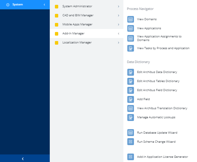 This section of Archibus System Management Help contains procedure topics on the key tasks of changing the structure of the database by editing the data dictionary. For information on what changes affect the structure of the database, see What Constitutes a Structural Change to the Database?