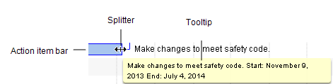 The Gantt chart report provides a quick and easy visual representation of how project action items are proceeding, and enables you to find critical dependencies that need to be expedited so that the schedule is not adversely affected.