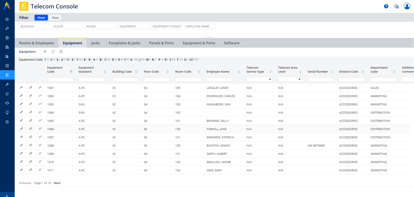Provide a single, central console for accessing data on equipment, faceplates, jacks, panels, ports, equipment, network devices integrated with the view of the workstations, rooms and staff they support.