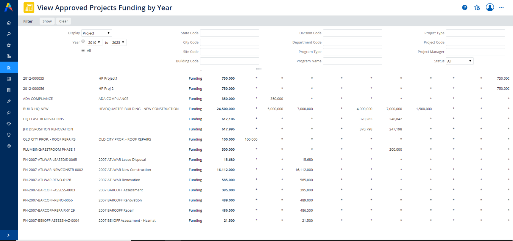 Multi-year capital budgets that summarize all planned activity in a single, consistent format.
