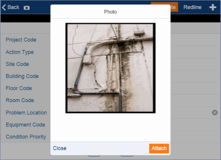 After you take a picture and attach it as a document, you may wish to annotate it, such as to point out an area that needs repair or furniture that should be removed from an office. In these cases, you can mark up (redline) the photo just as you would a floor plan drawing. For information, see Redlining Floor Plans and Images.