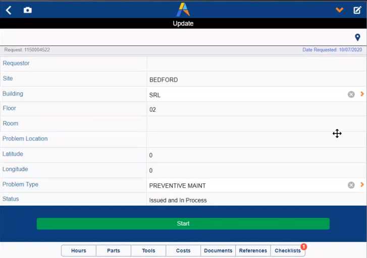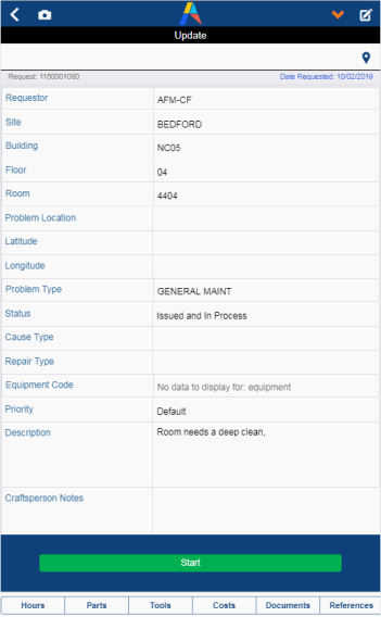 Note: Beginning with V.26.3, craftspersons can also use the OnSite mobile app for accessing and updating work requests while in the field.
