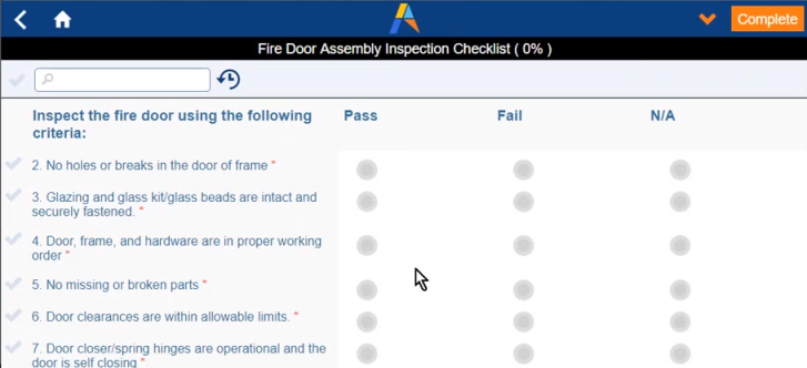 - Typically, you will work through the checklist, answering questions in the order presented. The app instantly saves your responses locally.