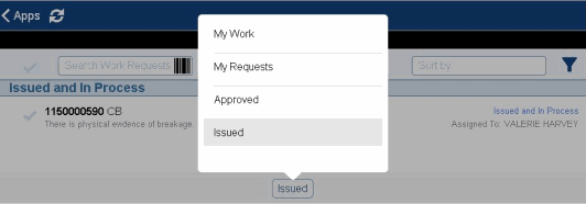| Issued | To process work that is issued. This tab shows work assigned to the craftsperson that has a status of "Issued and in Process." The craftsperson can process work from either this tab or from the My Work tab. |