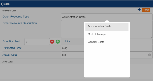 If the job entails other costs that are not related to labor and parts--such as the cost of a permit--craftspersons can record these by using the Costs screen. Costs can be classified as Administrative, Transport, or General.