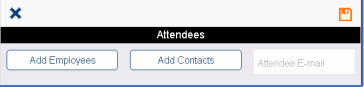 Suppose that after the reservation is confirmed, the guest list changes so that requestor needs to invite additional attendees to the meeting or remove some guests. They can select the person-shaped button (in above image) to access the below form for adding or removing employees, contacts, and other attendees to the reservation. When the user syncs, the system sends email notifications to the attendees who were added or deleted.