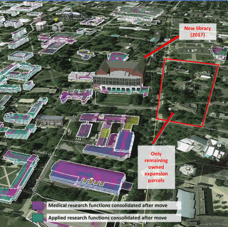 For example, on an image of an aerial view of a map, you may wish to visually show proposed changes by circling a potential building to purchase, making notations, and including a legend of the highlight colors. (Note that in the below image, the user highlighted the buildings before capturing the image; with the markup feature, you can highlight only rooms on floor plans.)
