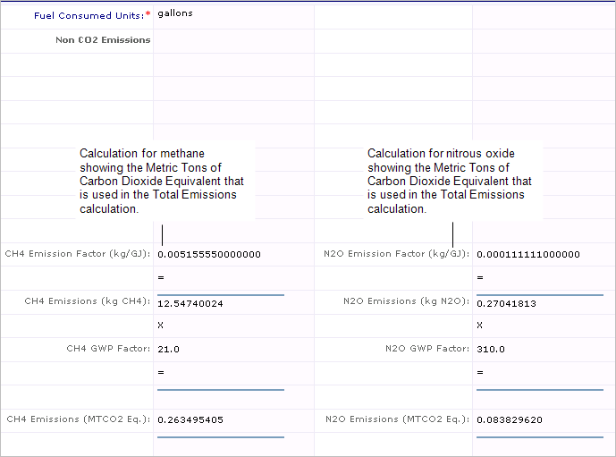 Total emissions is expressed as Metric Tons CO2 that is calculated by adding the metric tons of carbon dioxide emissions with the metric ton carbon dioxide equivalents for methane and nitrous oxide as shown in the following equation: