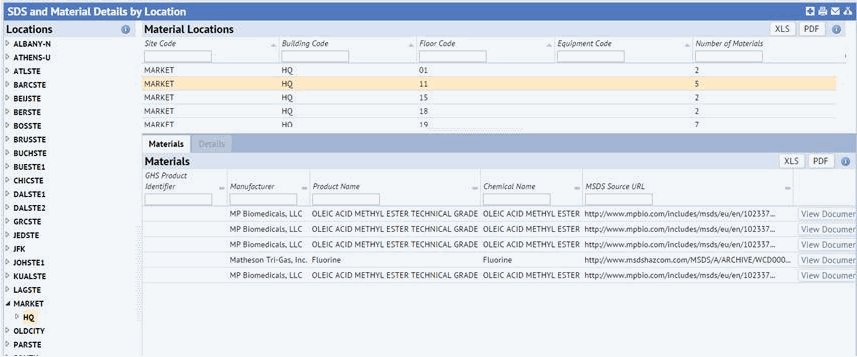 SDS and Material Details by Location