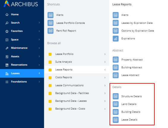 - The Lease and Building Details Reports When Using Archibus Enhanced Global Feature Set