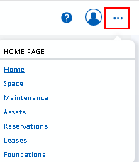 Typically, you will be assigned just one home page. However, if you are signed in with a role that has multiple home pages, you can toggle between the pages using the Home Page menu, accessed from the Select Home Page icon, below. For example, the sample AFM-MOD user is assigned multiple home pages, and their Home Page menu appears as below. Note that the menu underlines the home page that is currently loaded.