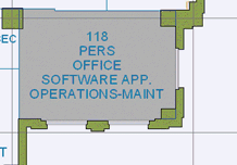 Although the Archibus Asset Types table stores the default asset text conventions for each type of asset, once created, each asset symbol stores the settings controlling its particular asset text. You can move and place asset text using the AutoCAD grip edit and move commands.