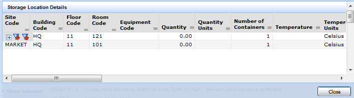 Clicking a chemical displays a pop-up window showing location information