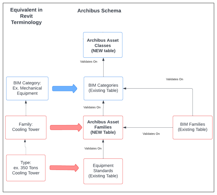 introduces the concept of Archibus Asset Families as parents to Equipment Standards. This enables support of a multi-level asset hierarchy.