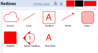 The Redlines panel offers several tools for marking up your floor plans and images.