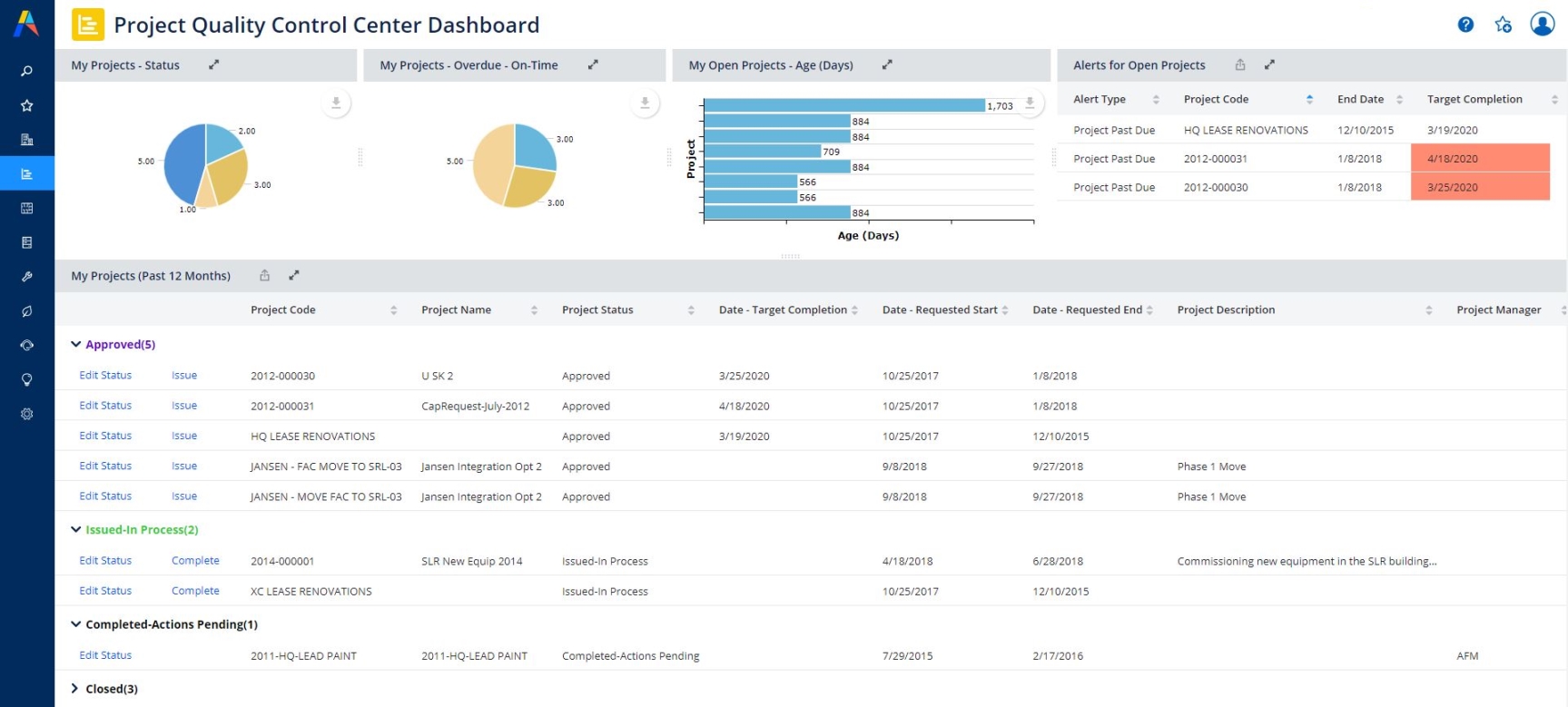 With the Projects application, all parties involved in a capital project—from the requestor, to the approving managers, to the vendors bidding on the work, to the craftspersons executing the work, to the project managers tracking cost variances—can work collaboratively over the Web to ensure that the project is completed on time and within budget.