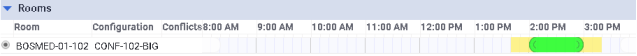 3. The Rooms pane shows the room that is reserved and the time for which it is reserved.