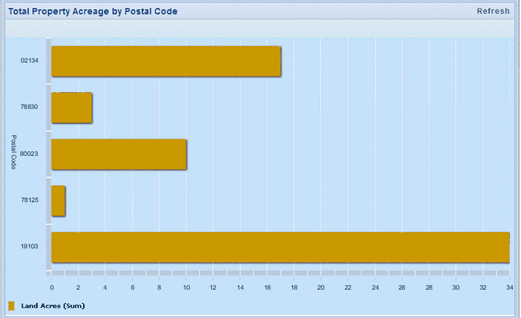 Here is the same property acreage by postal code data presented as a bar chart, with each postal code on the vertical axis.