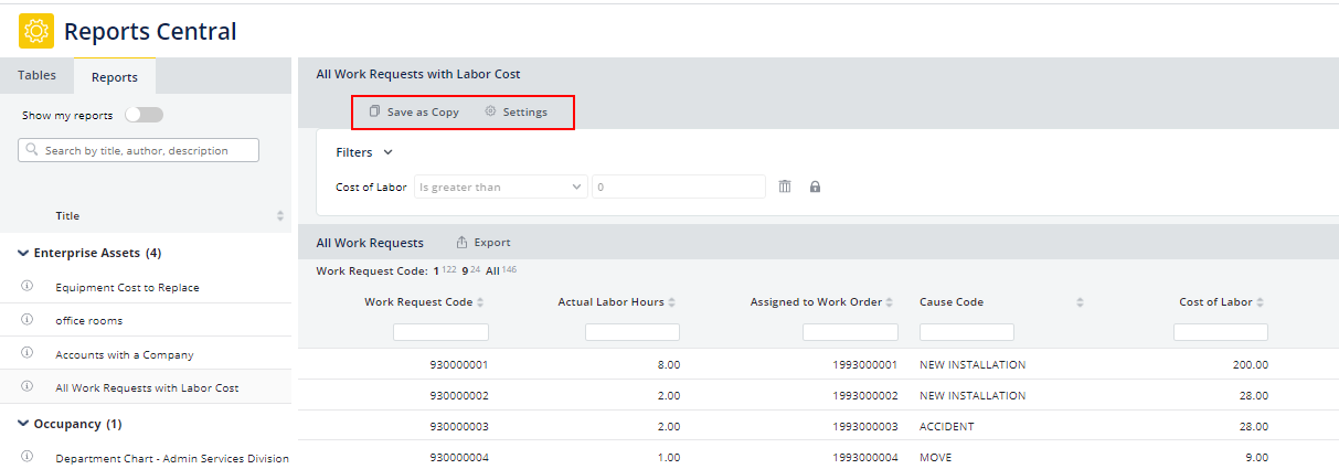 The below image shows a report that was created by user ADMIN and then accessed by user AFM. Note that because user AFM did not create the report, they do not have the full list of editing commands. As the report consumer, user AFM can:
