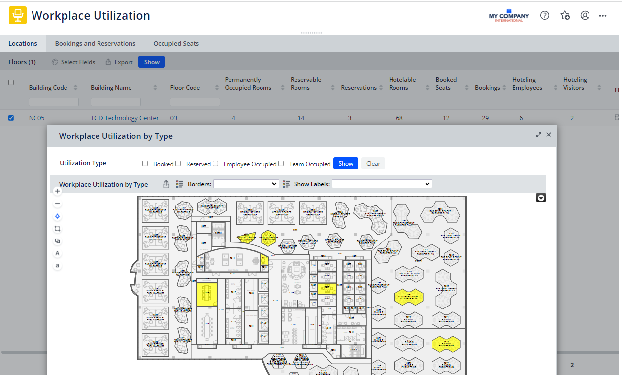 V.2022.02 mejora este informe al incluir, además, los espacios permanentemente ocupados, de modo que usted pueda evaluar por completo cómo se usa una planta; en un mismo informe, puede ver la utilización de los espacios de reunión, los espacios de trabajo ocupados de forma permanente y espacios de trabajo reservados vía hoteling.